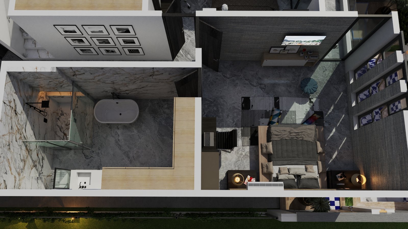 Habitación: Principal con vestier, 2 Lavamanos, tina y balcón